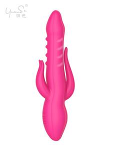 Triple Stimulation Vibrator, B0012, bending beads design, 3 rows of vertical beads inside the shaft, 8 rotating modes.