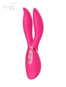 Top Female Vibrators, item number V16815, dual motors, battery powered, IPX5 waterproof, 7 vibration modes, medical grade silicone material